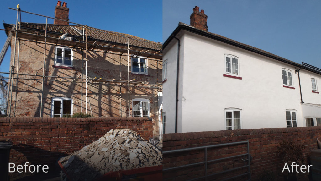 We were invited to tender for a project in Bassingfield that had extensive damp problems caused by the cement based render. We decided to re-render with 3 coats of lime mortar and several coats of lime wash. The property can now breathe the way it should.