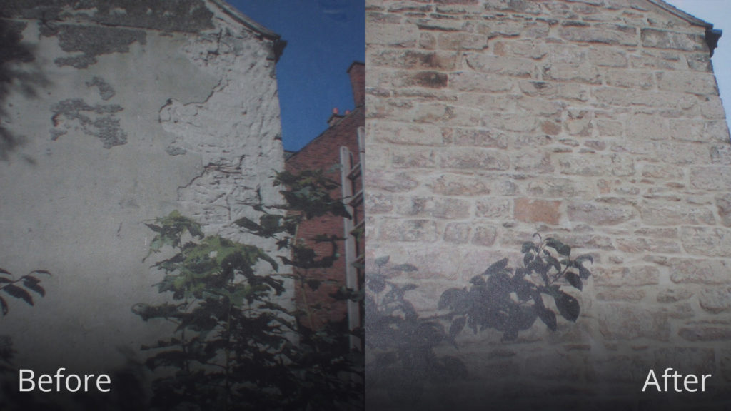 Customer was led to believe that re-rendering was the only solution to this deterioration which was also causing internal damp. We removed rendering and restored the stone to its former glory.