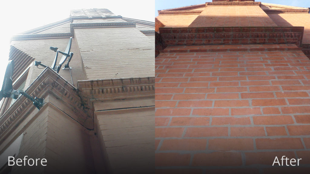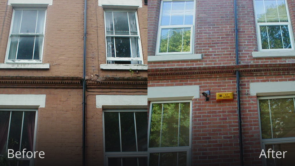 After several layers of paint was removed it revealed that the masonry and the terracotta had been rendered with neat cement, creating another problem as the cement was harder than the masonry. This made sand blasting out of the question, proving what sometimes seems impossible can be achieved with the right craftsmen, adding to the value of the property at the same time.