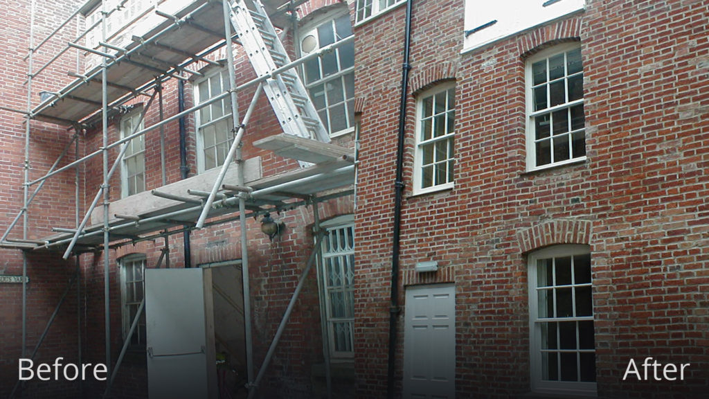 This property had been repointed a long time ago with the wrong mortar. This had caused a massive amount of decay to the face of the bricks which also made it difficult to rake out. A lot of bricks had to be replaced. It was then repointed with lime putty which should preserve the bricks for future generations.