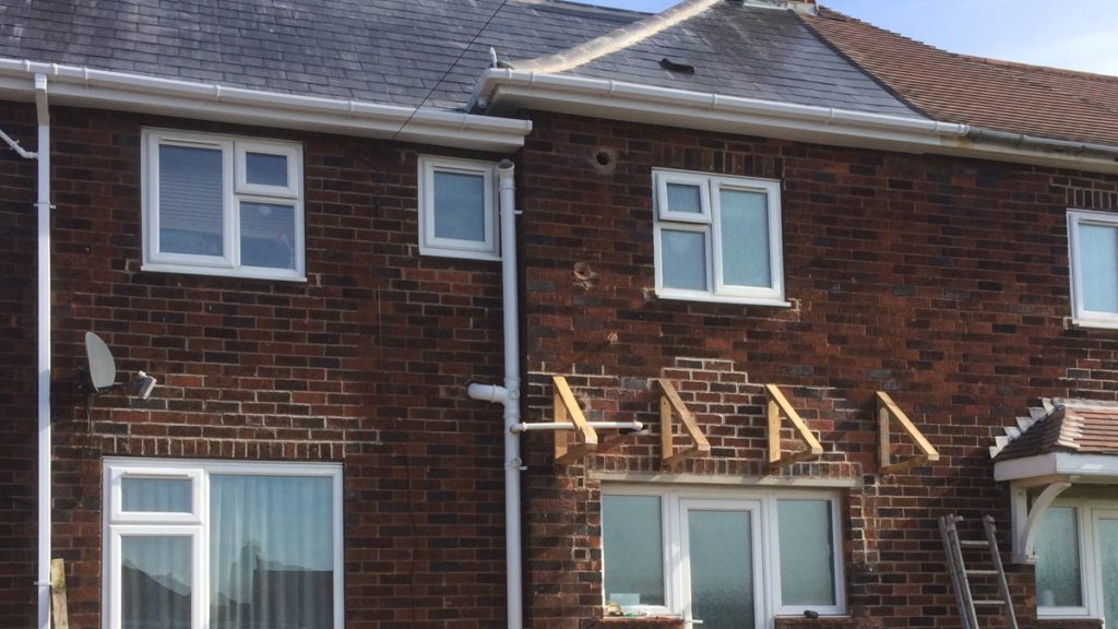 Full re-roof replacing defected Rosemary tiles with fibre slates. We were also asked to construct a canopy to hide unsightly brickwork.