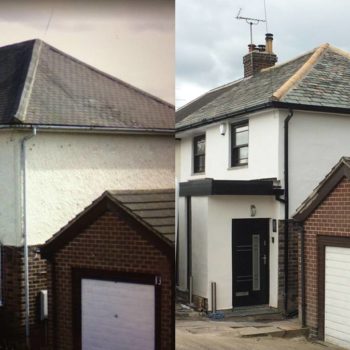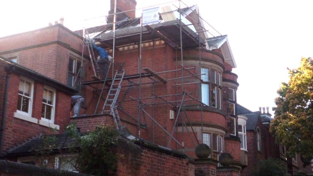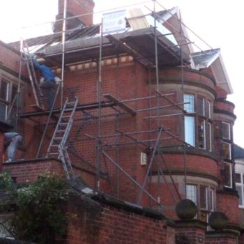 After previously curing a damp problem in a parapet wall 5 years earlier, we were invited back to re-roof this property with reclaimed Welsh slates. << Back to Gallery